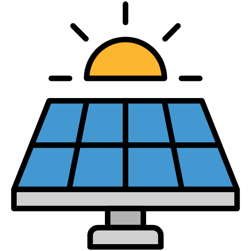 Hệ thống khung giàn giá đỡ: Rail nhôm, kẹp tấm pin, khung thép dùng để gắn, đỡ các tấm pin trên mái nhà một cách chắc chắn, cố định và tạo góc nghiêng phù hợp cho tấm pin để tấm pin hấp thụ bức xạ và có hiệu suất tối đa.